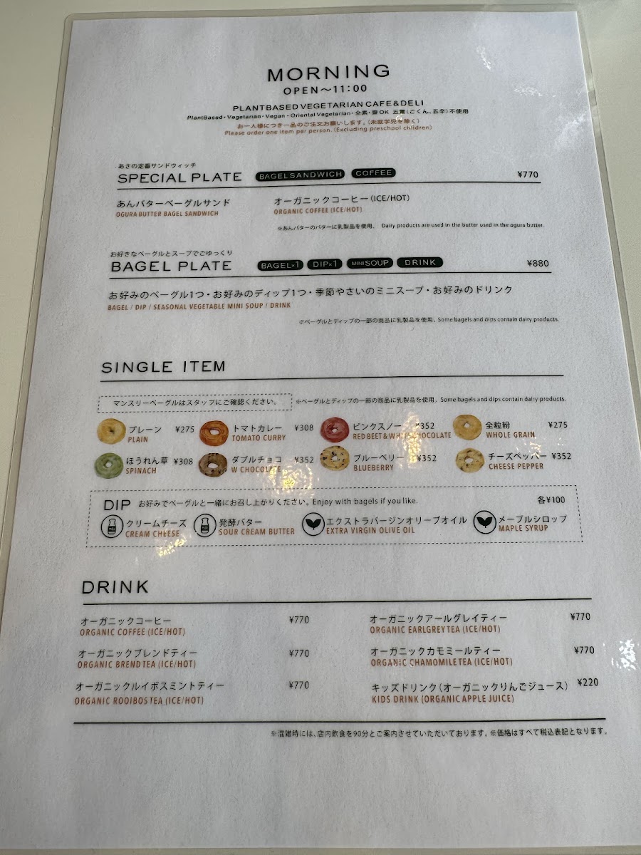 At JUNO CAFE JIYUGAOKA, a delightful plant-based haven nestled in Tokyo's Setagaya City, the menu is a celebration of vegetarian creativity. The standout is their BAGEL selection, featuring a hearty set that includes two bagels of your choice, delectable dips, seasonal vegetable soup, and a fresh salad, all for ¥1,770. Guests rave about the variety and freshness, with many enjoying the all-you-can-eat bagels accompanied by unlimited drinks.