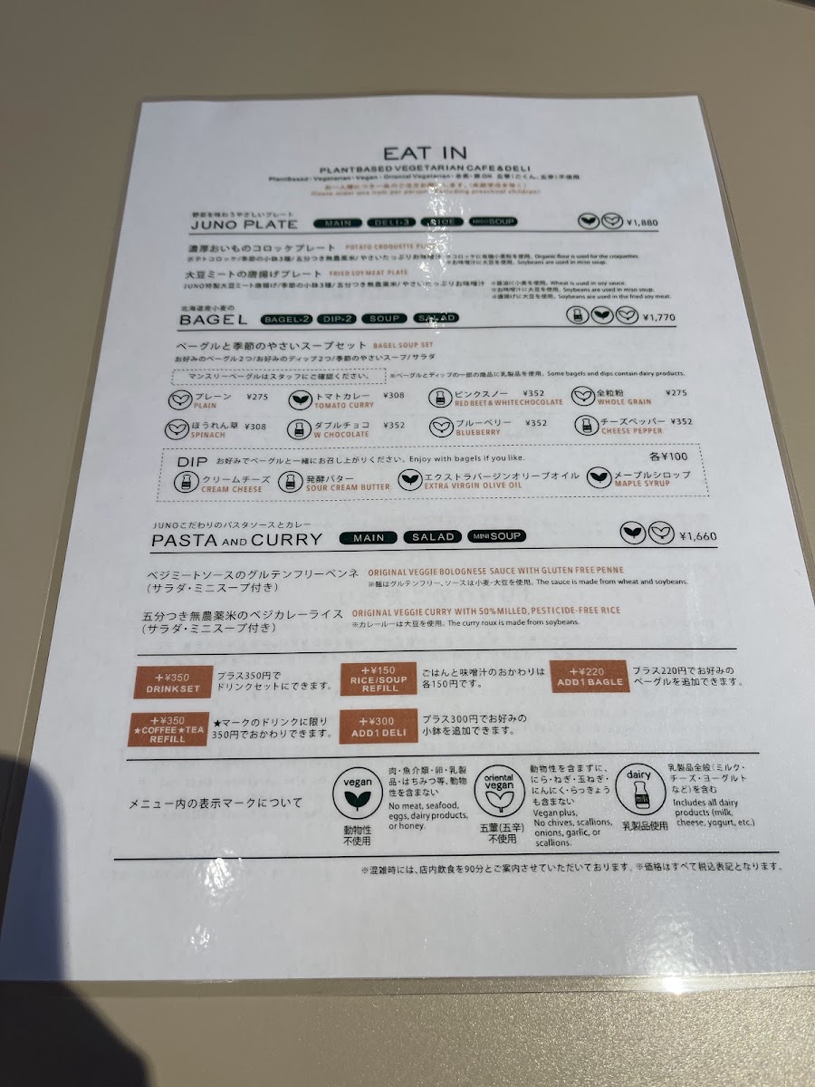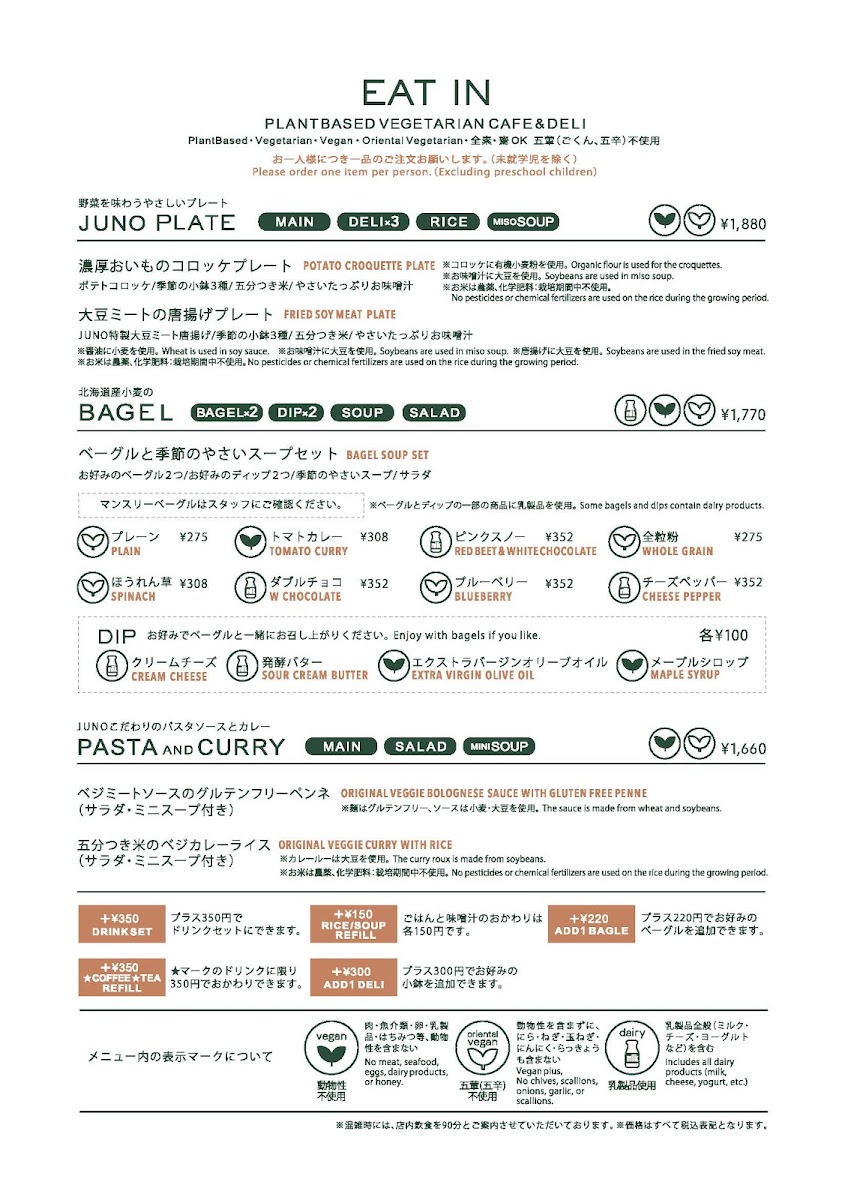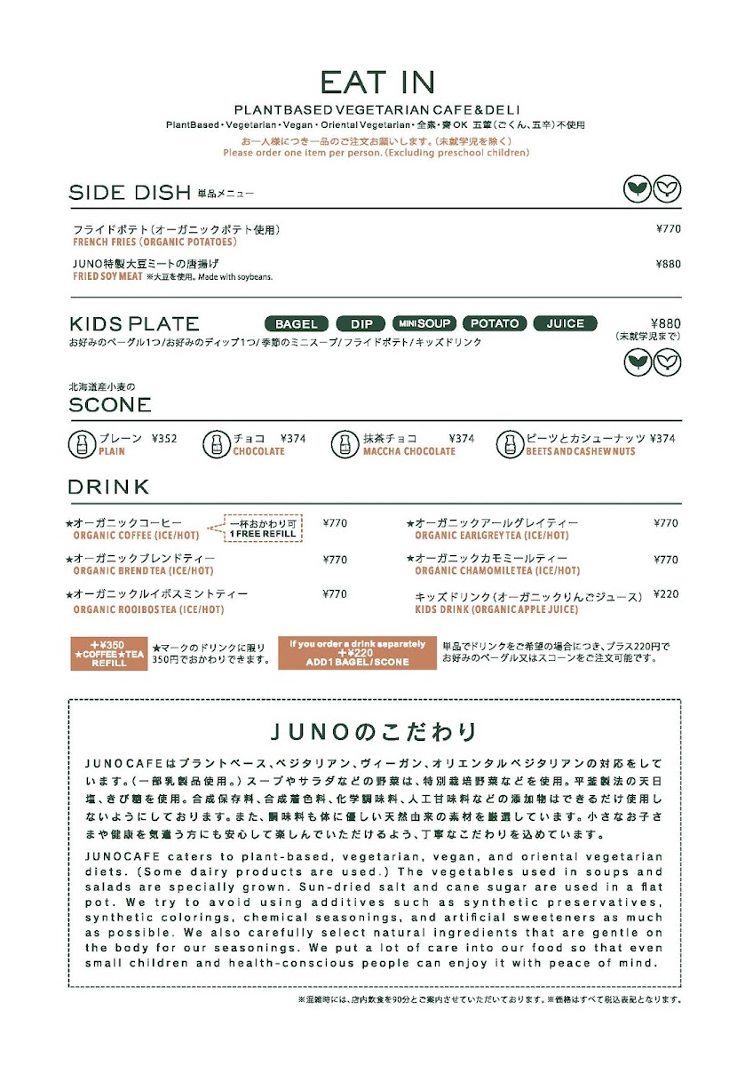 JUNO CAFE JIYUGAOKA ~Plant Based Cafe~ Menu